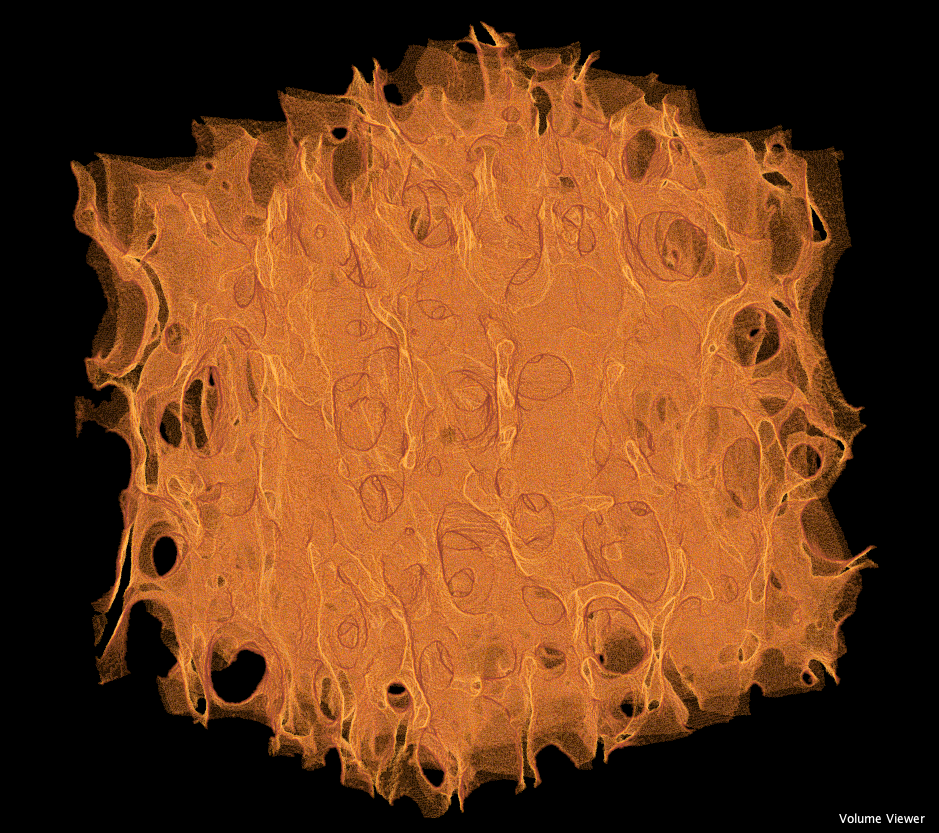 骨粗鬆症では、軽微な衝撃であっても海綿骨部位に骨折が多発します。骨量が低下すると骨折リスクが上昇しますが、骨量が十分でも骨折する例も多くあります。そこで、海綿骨を構成している骨梁一本一本の衝撃強さや、海綿骨のマイクロアーキテクチャに着目し、動的強度に対するこれらの寄与を実験的に解明しています。得られた知見を基に、骨折リスクの診断や制御に応用することを目指しています。